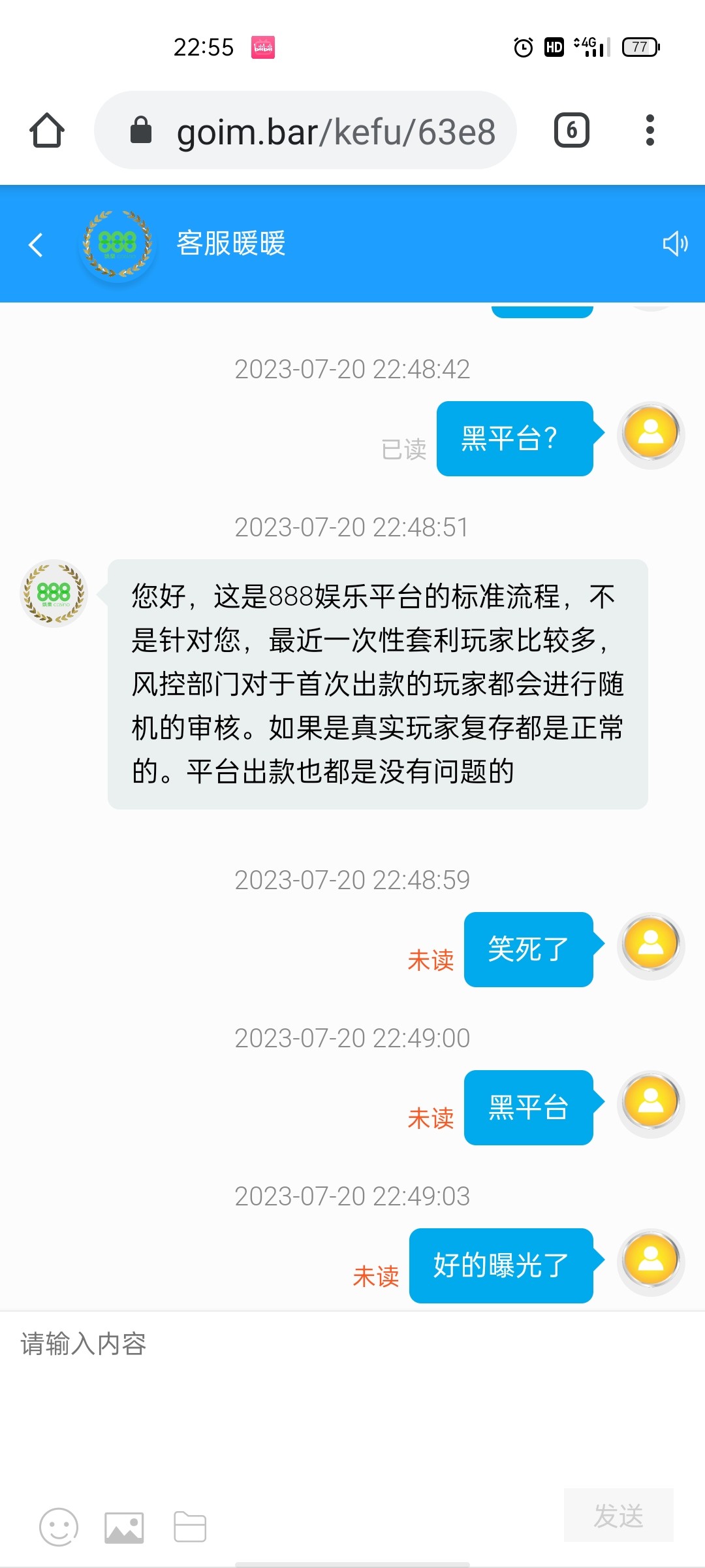 兄弟们避雷888娱乐这个平台,狗带打电话来推的这种,看到就是赚