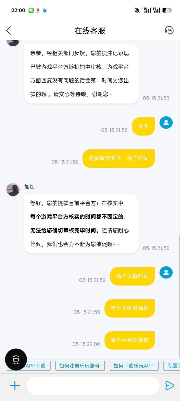 乐玩,昨天晚上不到8点提的现,一直到现在正好12个小时,你们自己看客服怎么说的吧,这都是充值提的现,