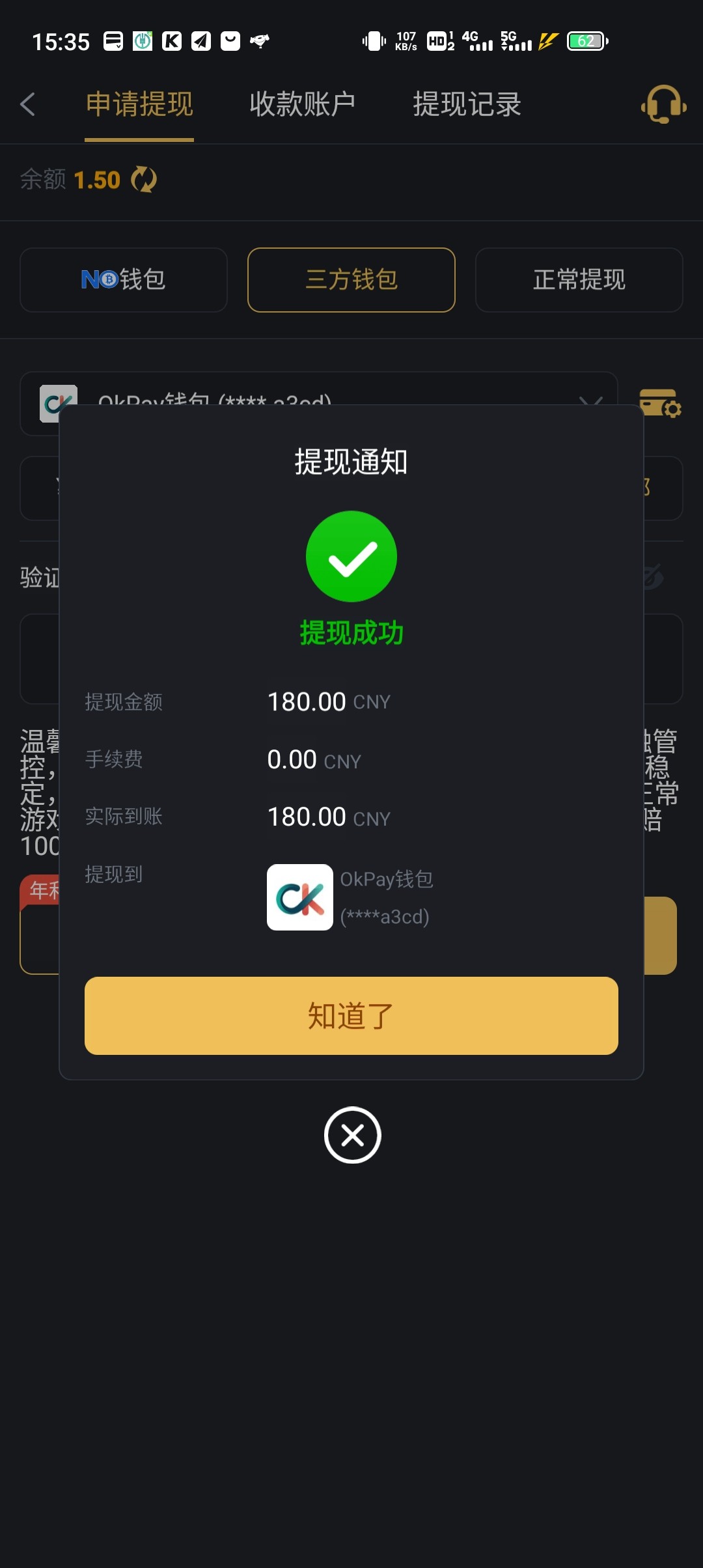 电话邀请送了9块,是20期每期九块,已经得吃,麻将最后一块钱爆了,,