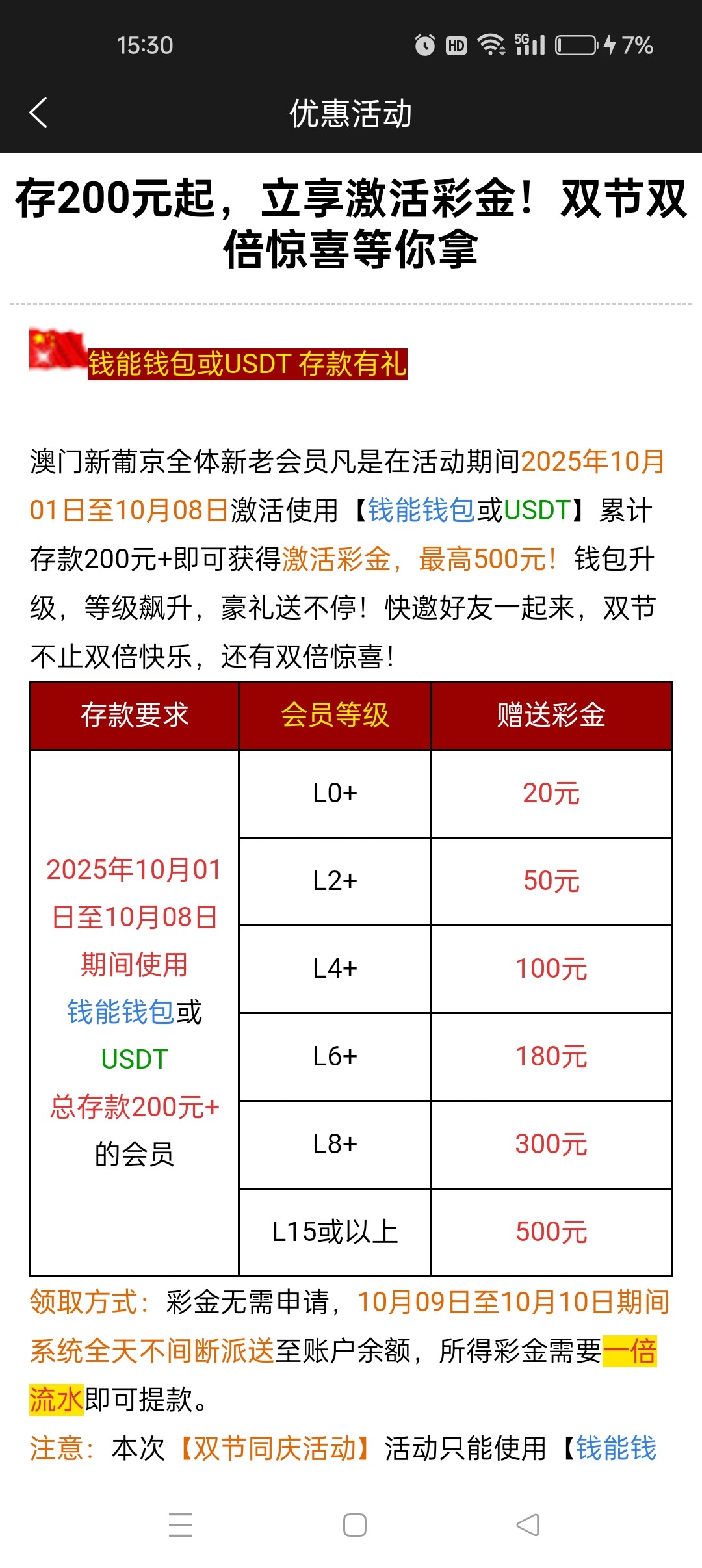 662双节期间存款回馈到账了