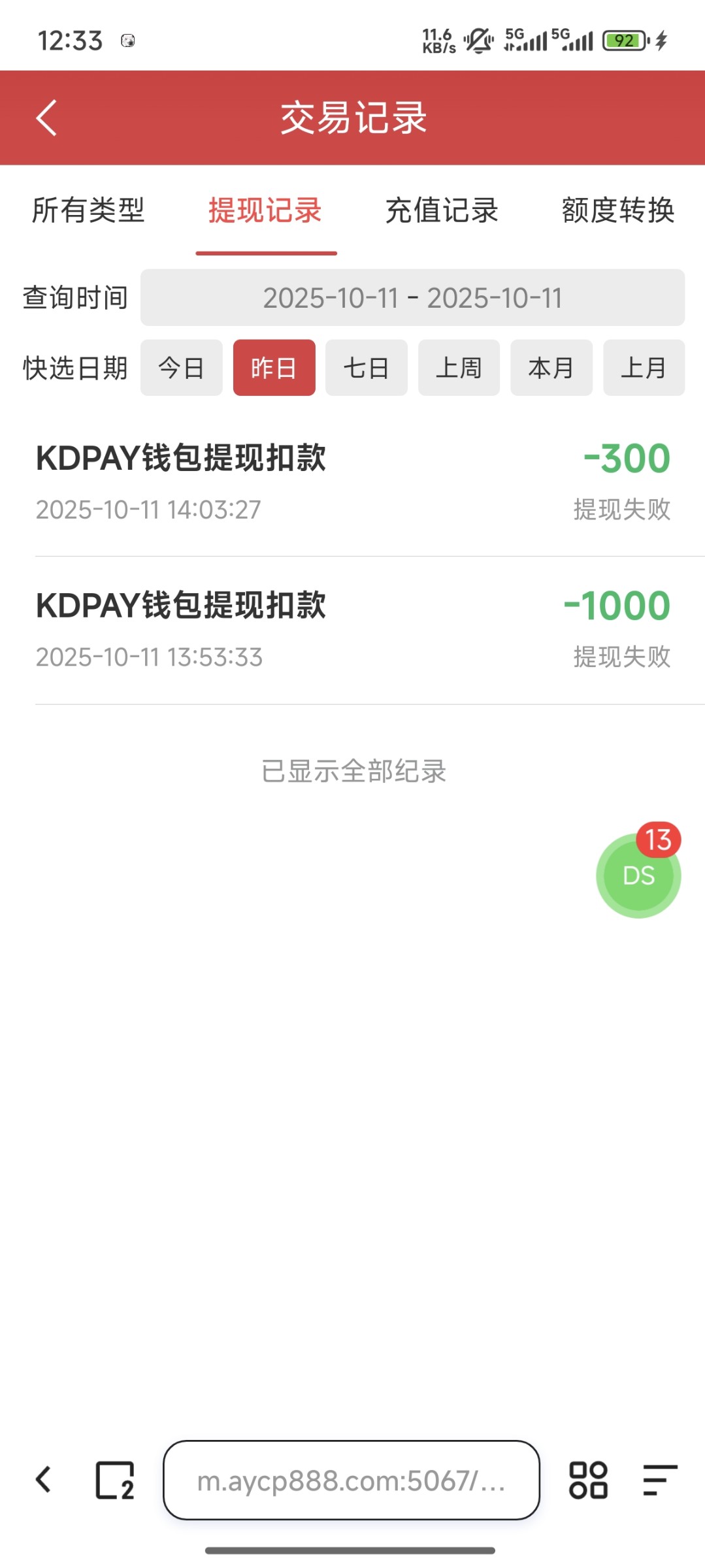 被黑金额: