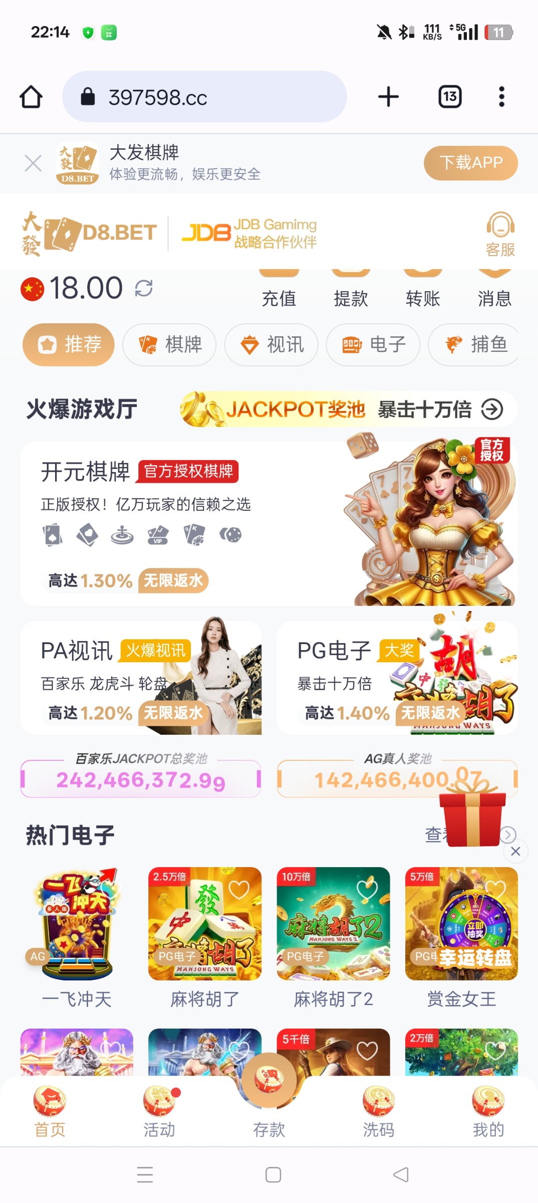 大发棋牌送18