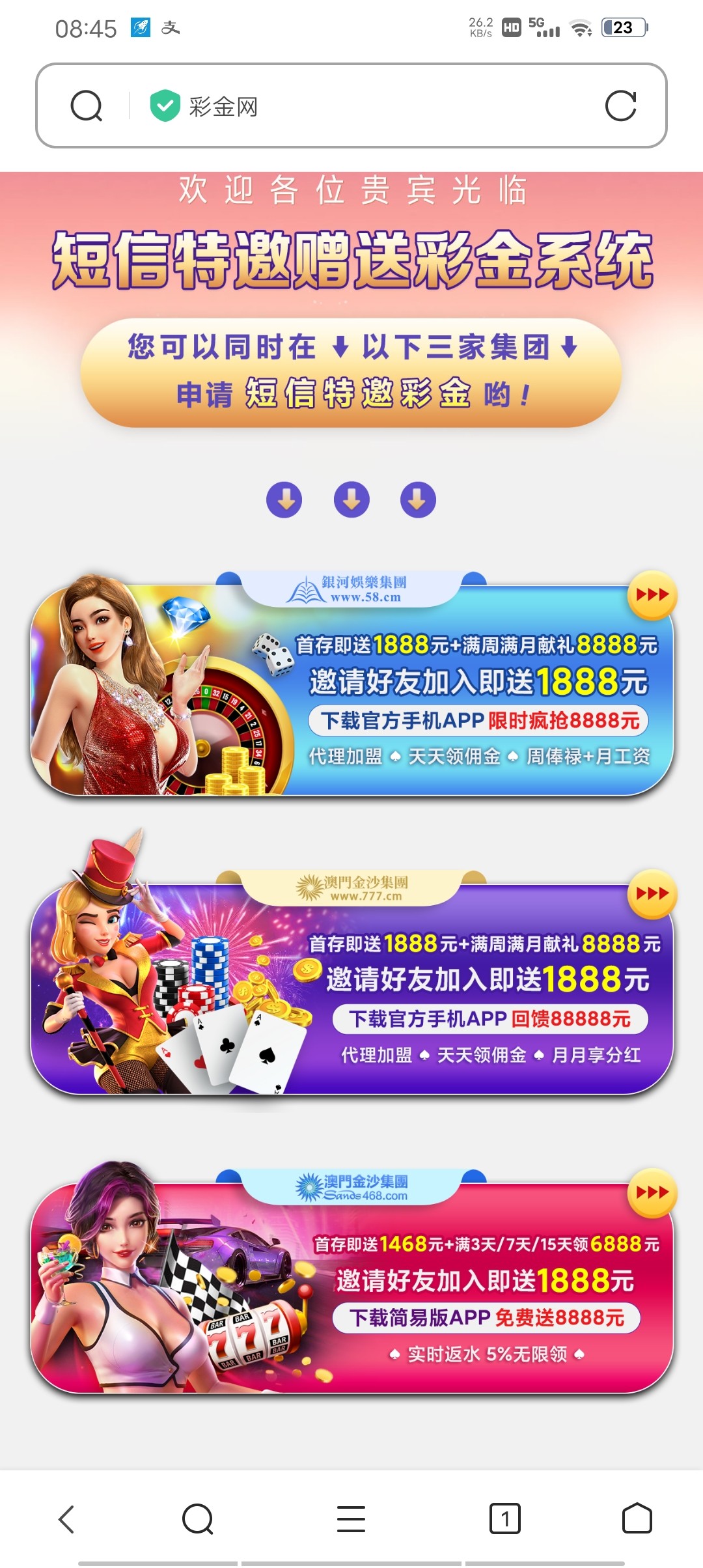 老哥们谁知道这三家的申请彩金地址