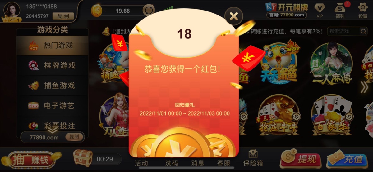 活动:老用户以前有号的登入自动弹出回馈